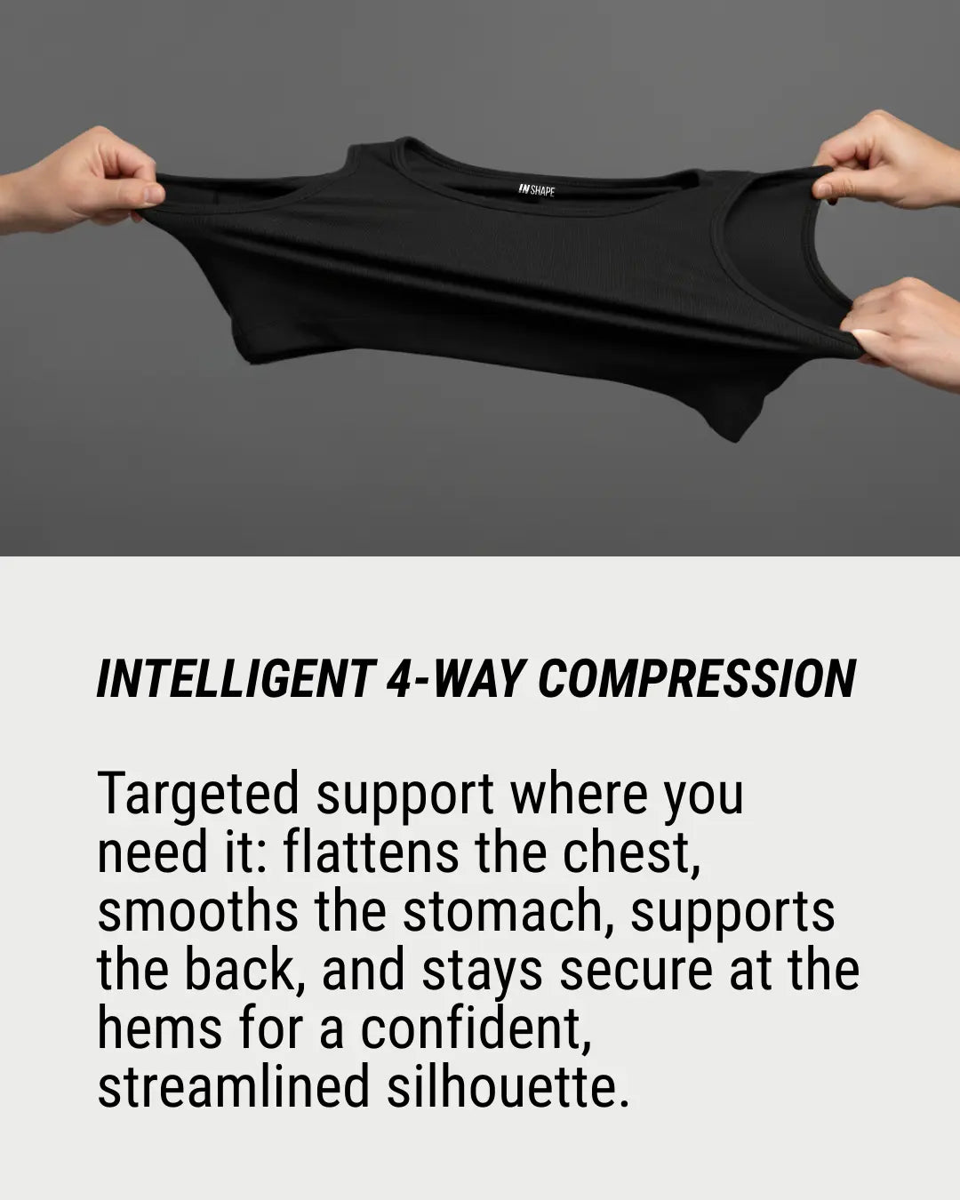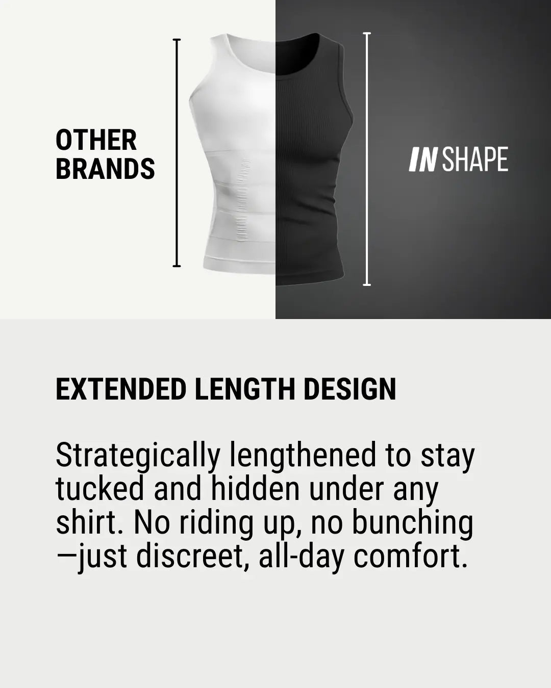 Nope. The InShape Compression Tank is made with a secure elastic hem that keeps it in place — even when you’re sitting, stretching, or moving around.